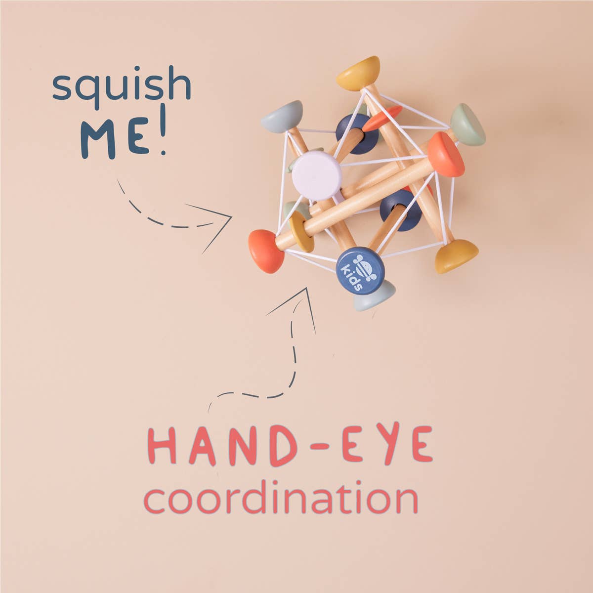 Toddlers will enjoy hours of sensory fun with this awesome activity ball! Crafted from durable FSC certified wood and painted in a rainbow of pastel tones, this multi-sensory toy is perfect for little learners. This clever toy features stretchy elastics, allowing tiny tots to squash, twist and pull it in any direction. This marvellous sensory toy is made for curious minds, helping develop toddlers’ hand-eye coordination and fine motor skills through play. What’s more, this colourful toy doubles as a wonderful nursery decoration.