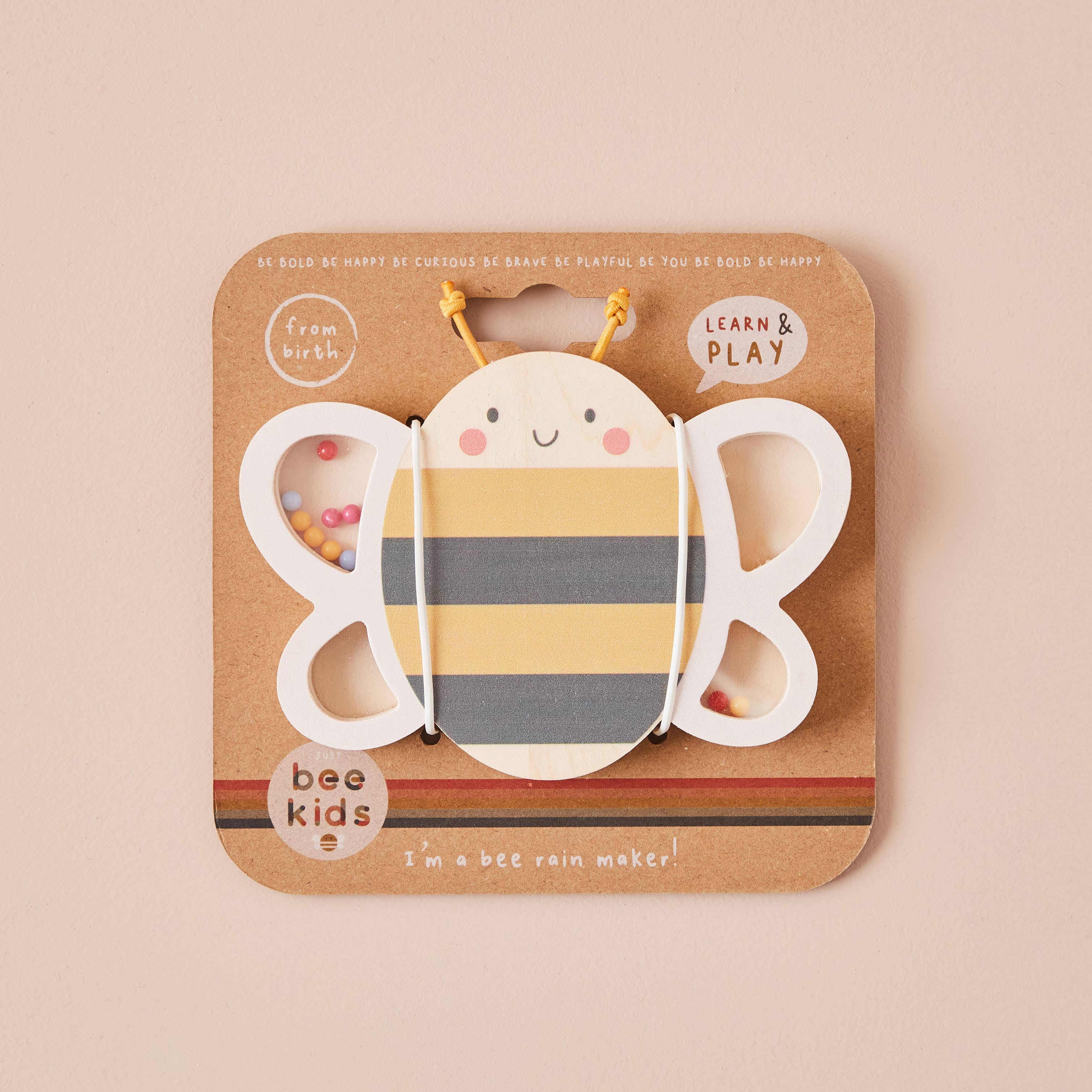 Busy little bees will be absolutely buzzing when they see this beautiful rainmaker toy. A truly delightful musical instrument that resembles a friendly bee made from FSC certified wood, this enchanting rainmaker is designed to captivate the youngest minds, offering a symphony of sensory experiences and endless hours of entertainment. A perfect blend of fun and learning, this brilliant bee rainmaker toy promises to be an essential addition to your child's playtime adventures.