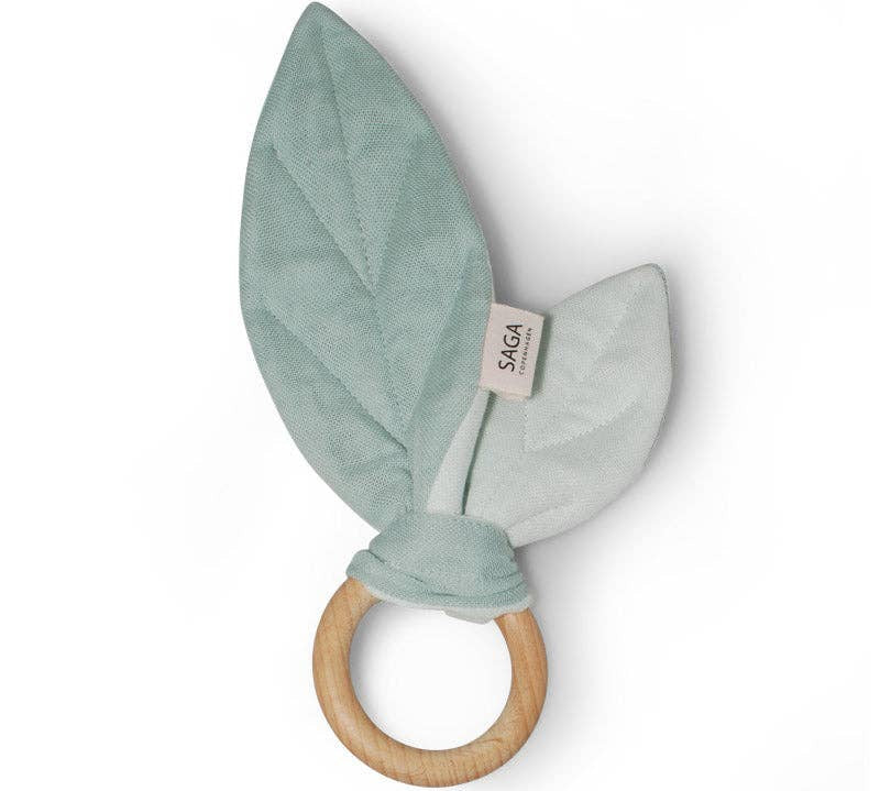 Crinkle Leaf Teething Ring + Sensory Toy - Mint