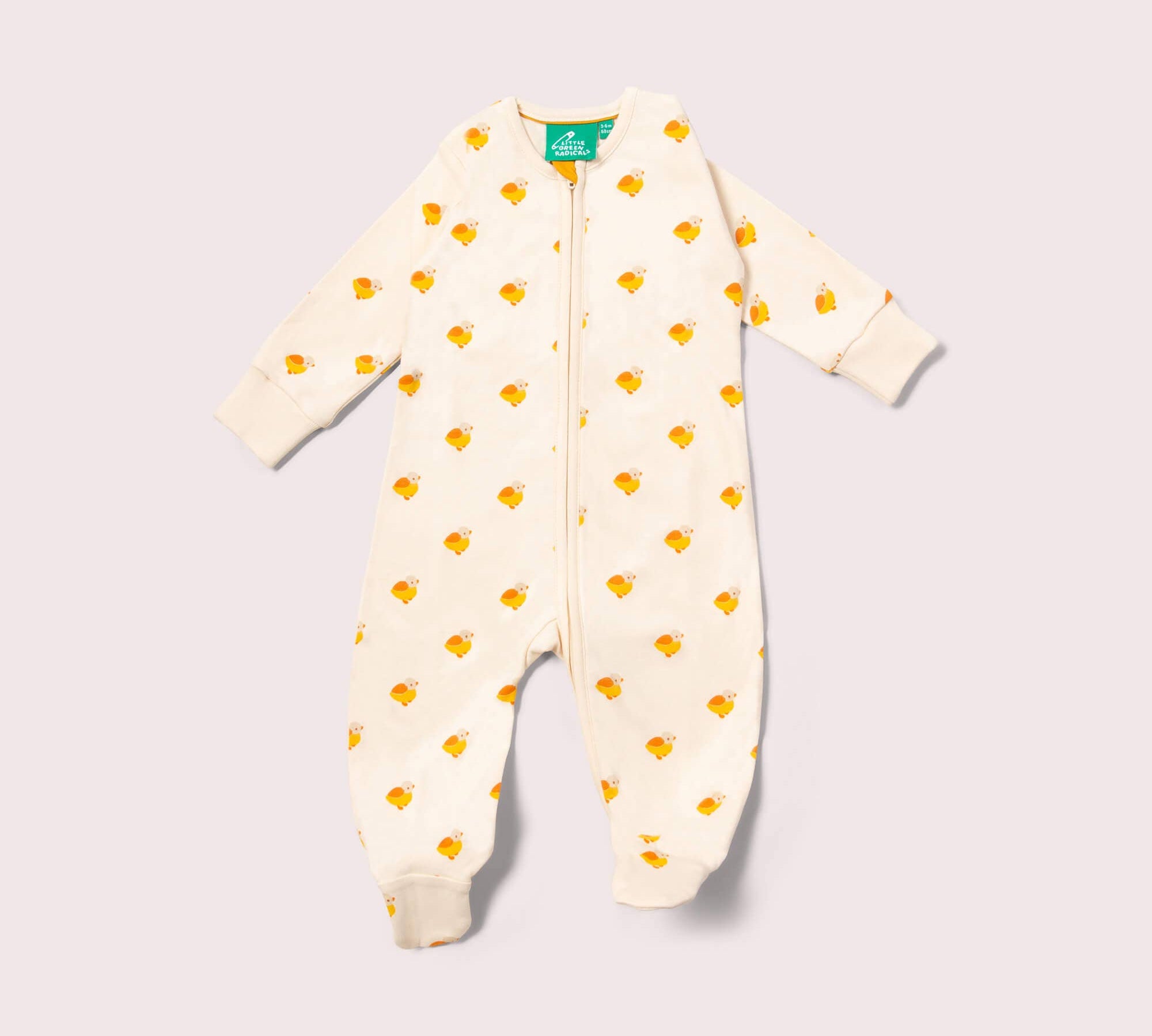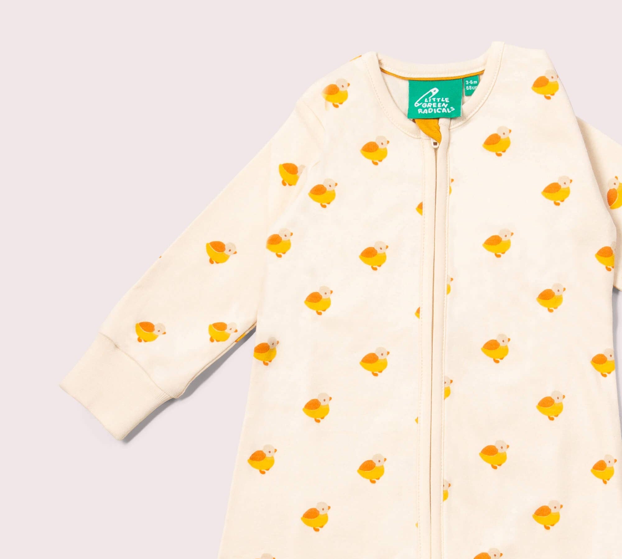 Little Ducks Zip Organic Babygrow - Lemon
