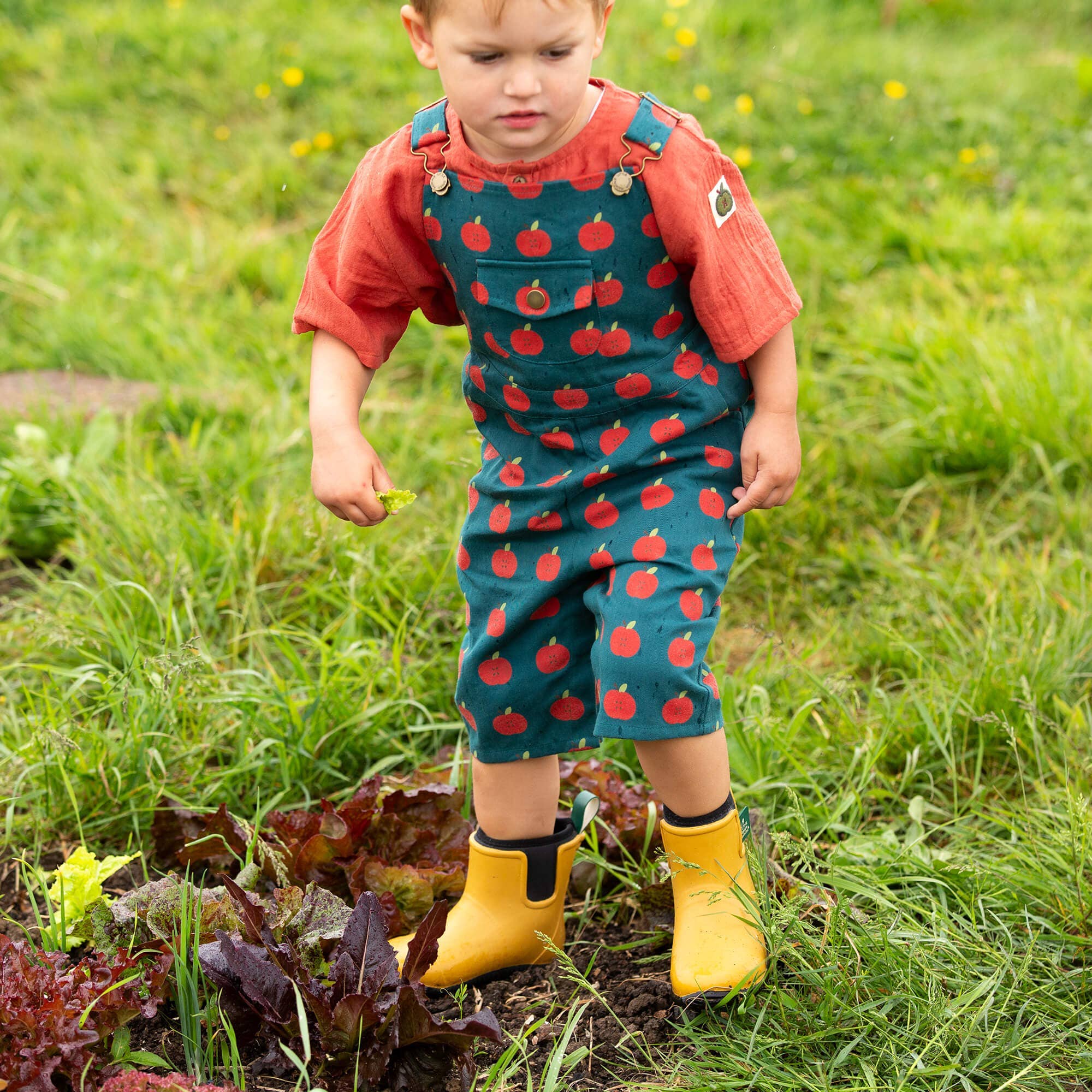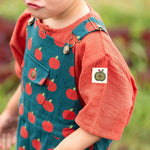 These cheerful Baby Dungaree Shorts with an adorable Apple print are made for sunny days, sticky fingers, and lots of adventures. Crafted from soft, breathable organic twill cotton, they’re lightweight yet durable, perfect for busy explorers.