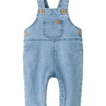 These baby loose-fit denim overalls are designed for everyday wear, comfy, durable, and easy to style. Made from woven denim with a soft feel, they feature a relaxed fit, a front pocket, and subtle worn-in details for a lived-in look that works for play and outings alike. Pair with a soft long-sleeve bodysuit or knitted cardigan for a cosy everyday look.