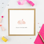 Hi from this jaunty lil guy! Original illustration printed on beautifully textured card and blank inside for your own message.