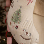 Watch Christmas Morning unfold with toys, stockings and presents under the tree. Adorned with sparkly embroidered stars, this stocking is an investment piece little one's will treasure for years to come. Pair with our matching Christmas Morning Present Sack.
