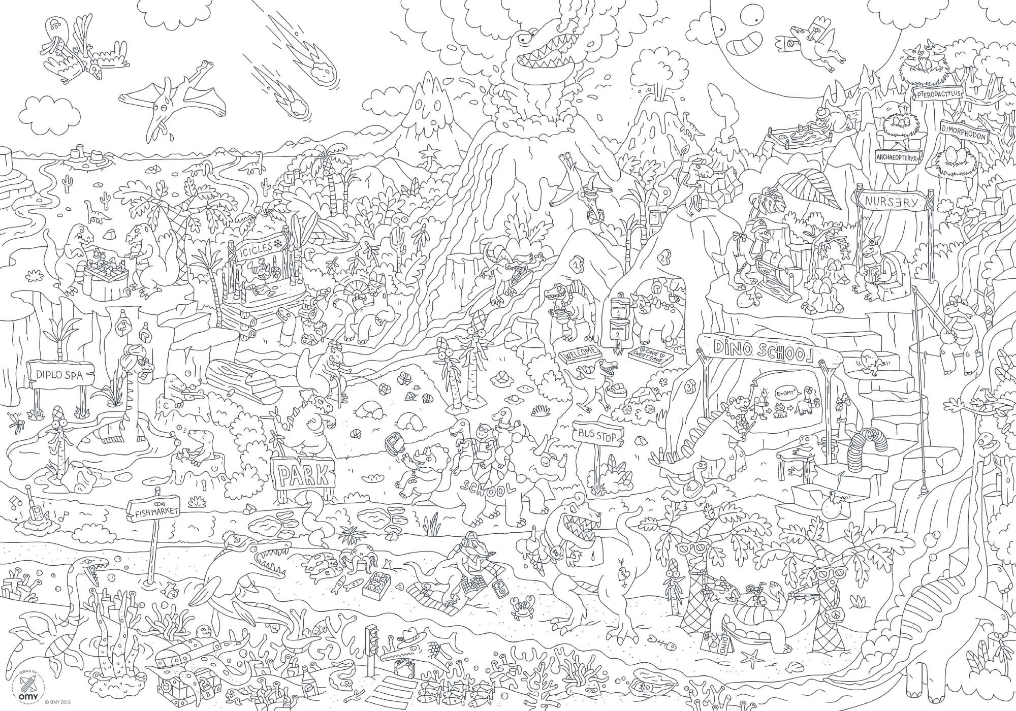 Step into a wild prehistoric realm with this giant dinosaur colouring poster! Packed with humorous details and intricate illustrations, this giant colouring poster with is a real artistic space for children with an overflowing imagination! Spread it across the floor for a family colouring adventure, hang it as a statement wall piece, or drape it as a magical tablecloth, the possibilities are endless. Perfect for solo artists or multi-generational creative sessions, it's a graphic journey that sparks joy with every coloured stroke!