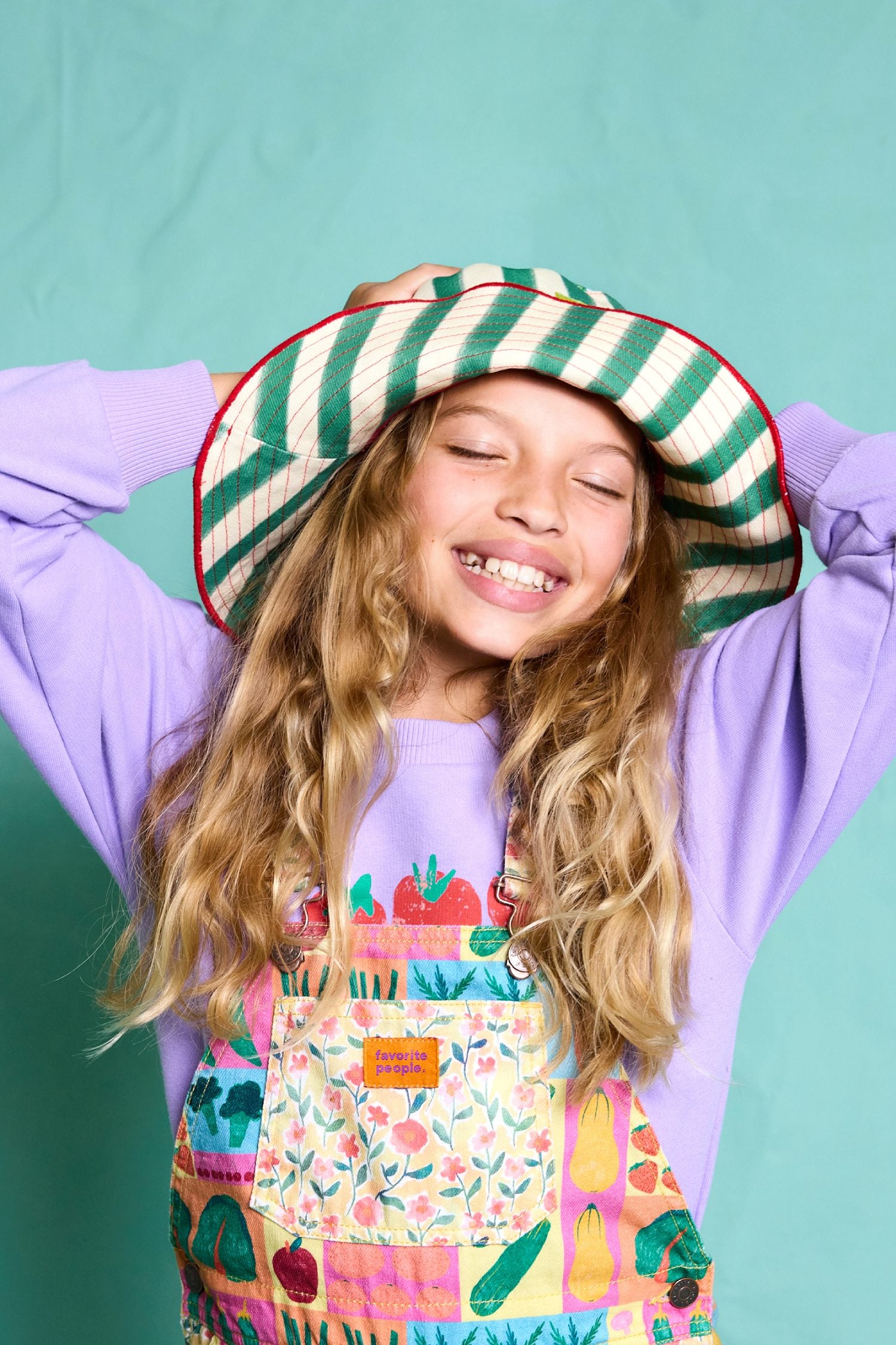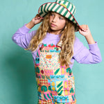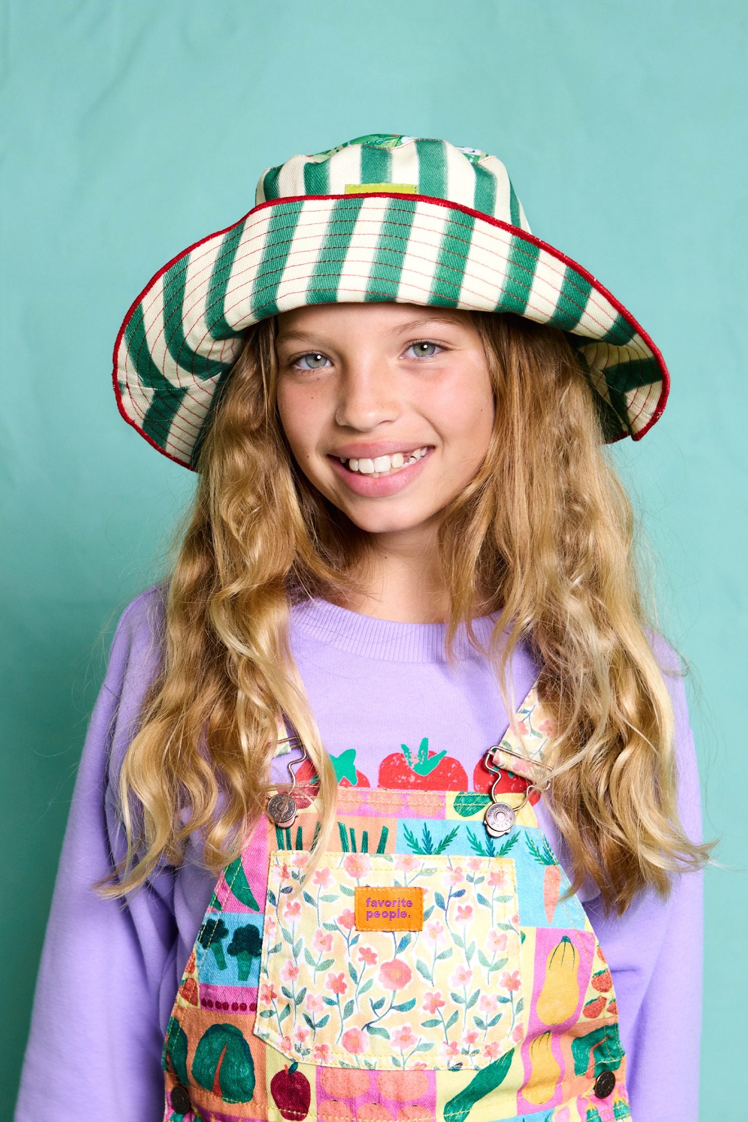 Finish off any outfit and keep them shaded with this eye-catching kids bucket hat in green and white stripes. Lightweight and fully lined for comfort, it’s an easy, everyday summer essential. Pair with our matching baby dungaree romper or kids short dungarees for an adorable summer outfit.