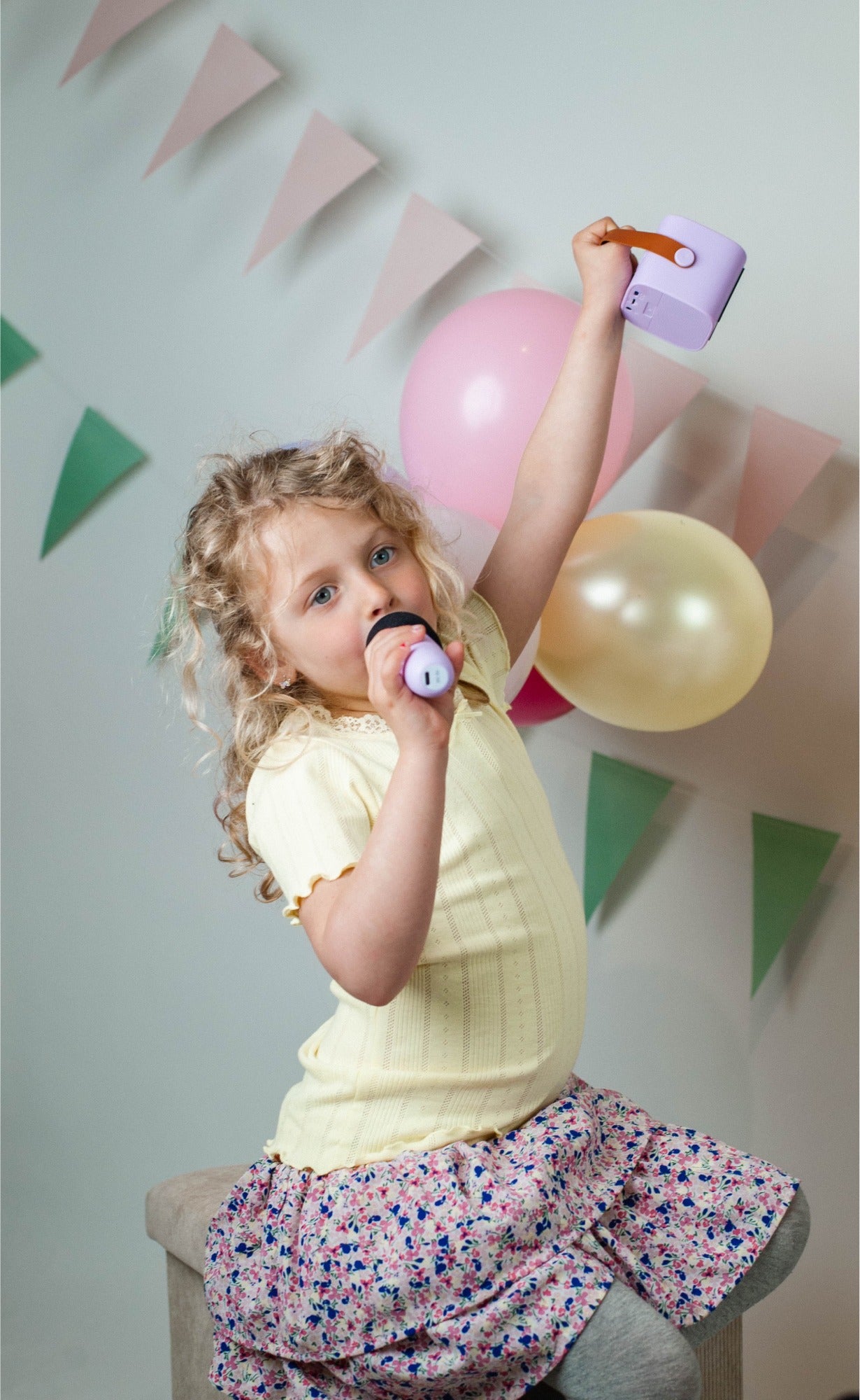 Get ready for an unforgettable experience with Lalarma's super fun and slim wireless microphone and speaker combo. Guarantees a fun party! It's colourful, compact, delivers an amazing sound and is so easy to operate for kids and youngsters alike, aged 3 years +. Kids can add a touch of excitement with the echo effect or easily adjust the volume using the buttons on the speaker. The compact size makes it perfect for taking on holiday, for parties and day-to-day play.
