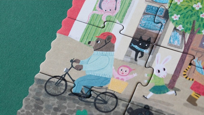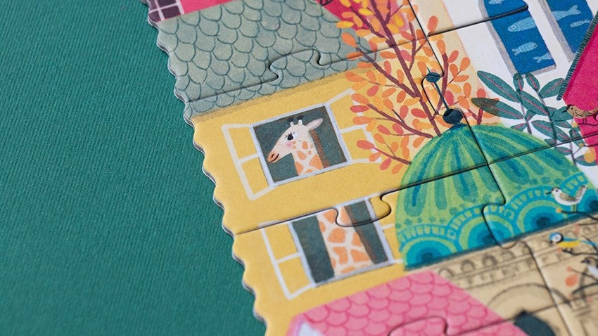 Once the 100-piece puzzle is assembled, we suggest different games to play as a group with the 48 accompanying counters. This puzzle is an excellent aid for inventing stories, strengthening creativity, stimulating the imagination and training observation skills.