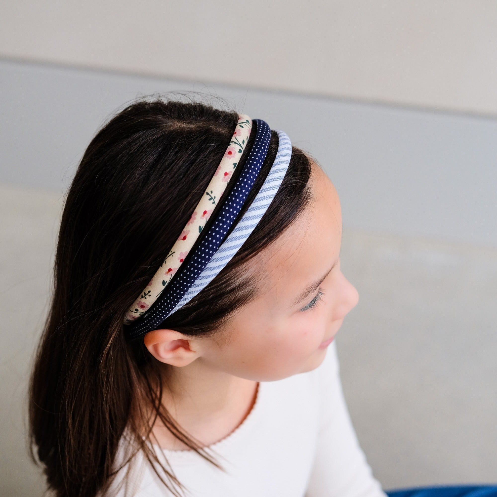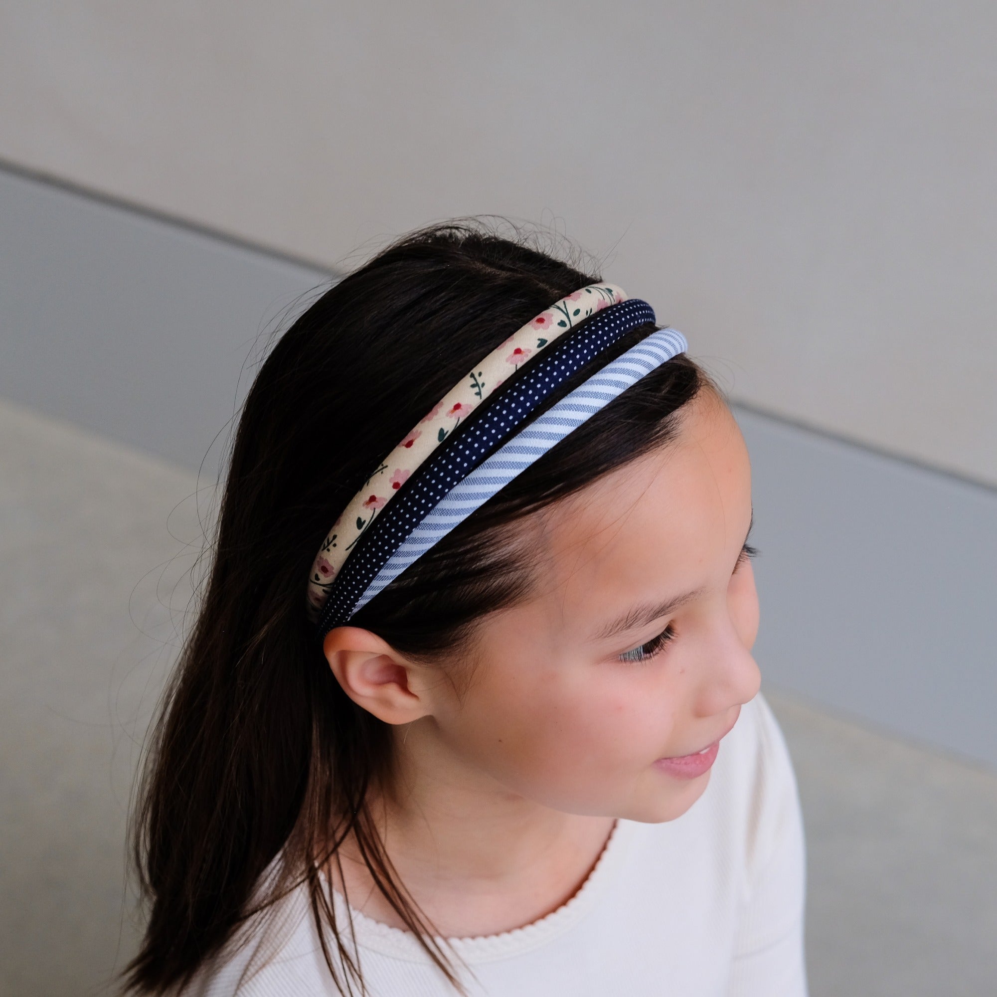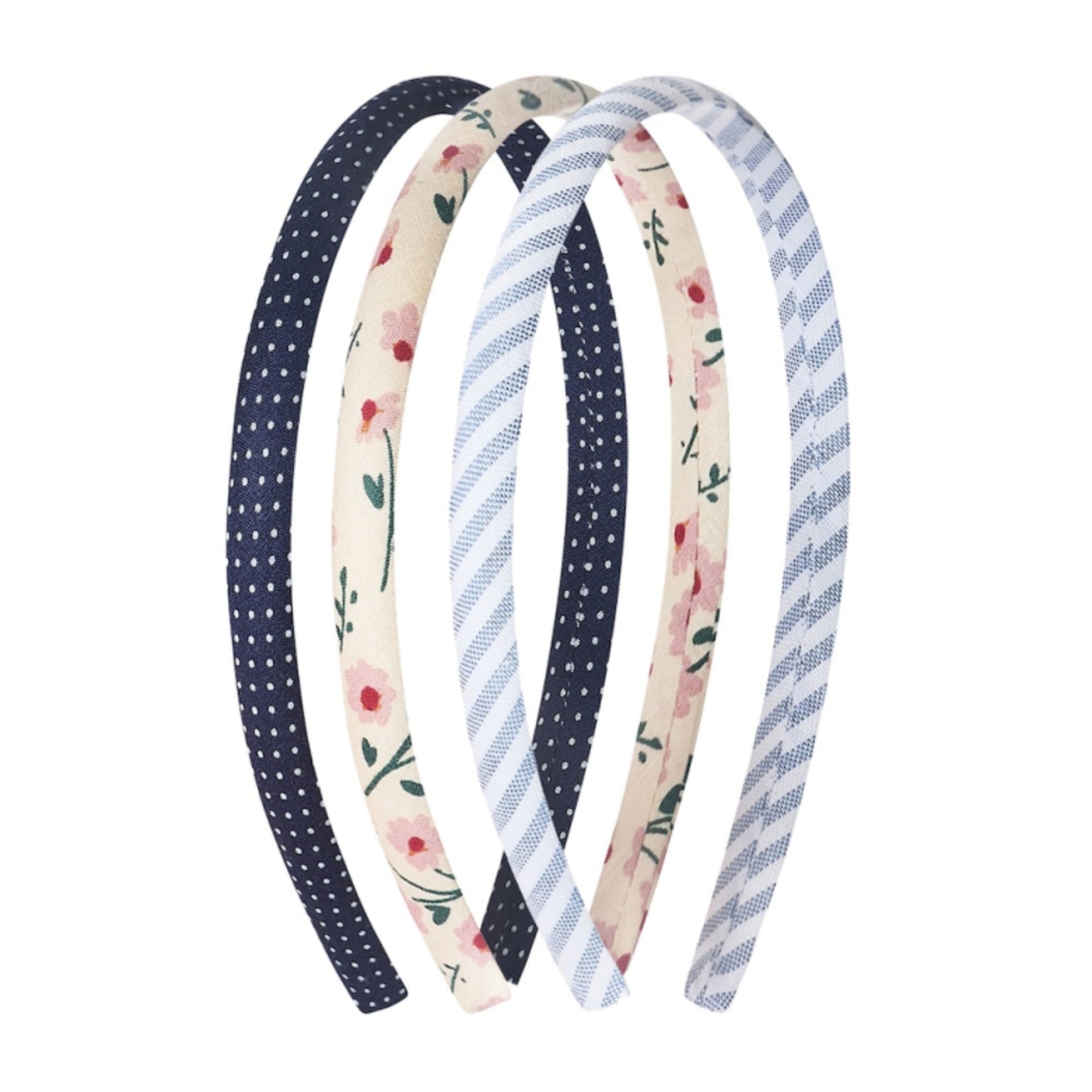 The perfect trio of alice bands to see them through Spring and Summer - one pretty polkadot, a fresh floral and a classic stripe. Let them swap and change to suit their style!
