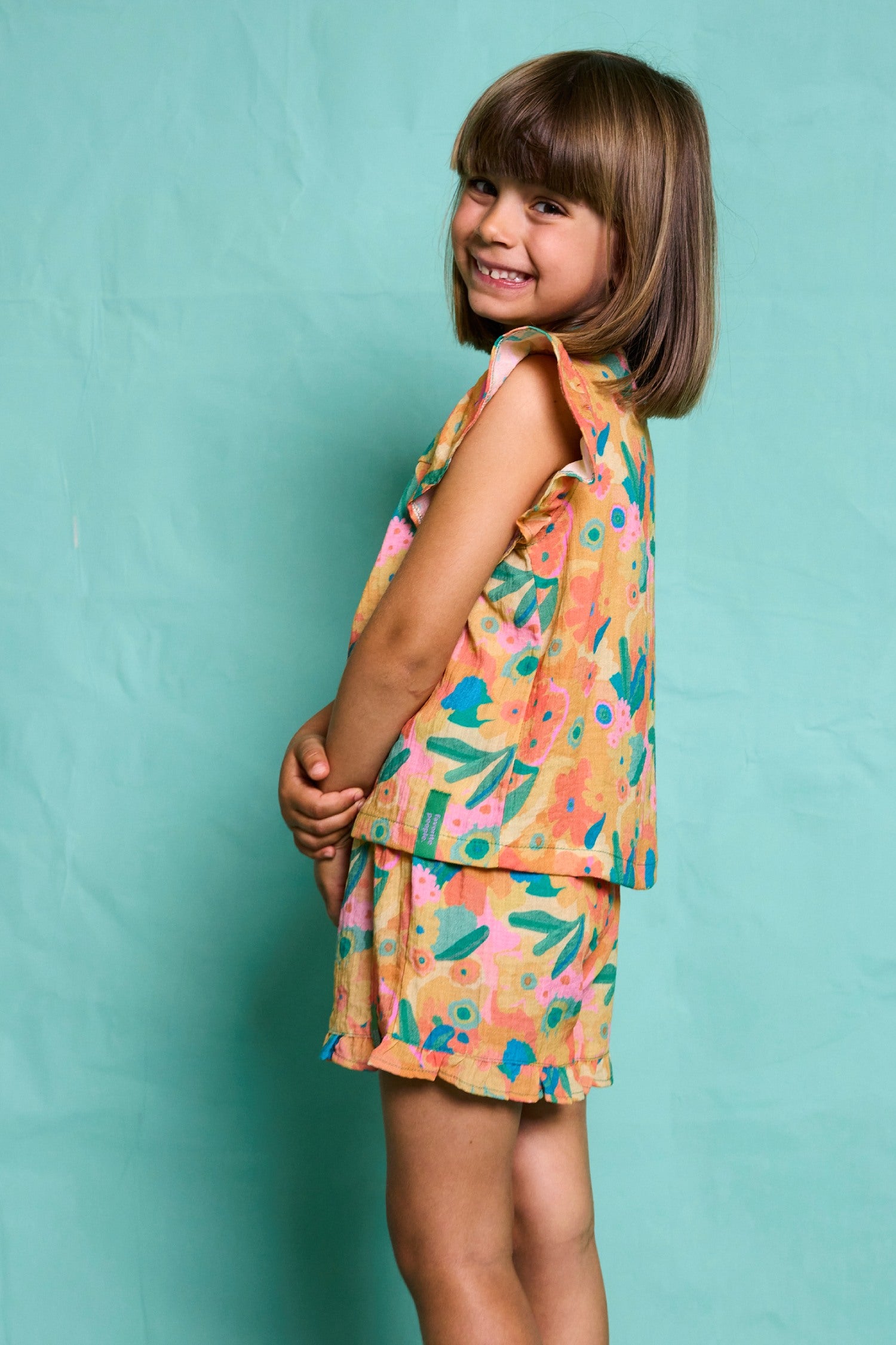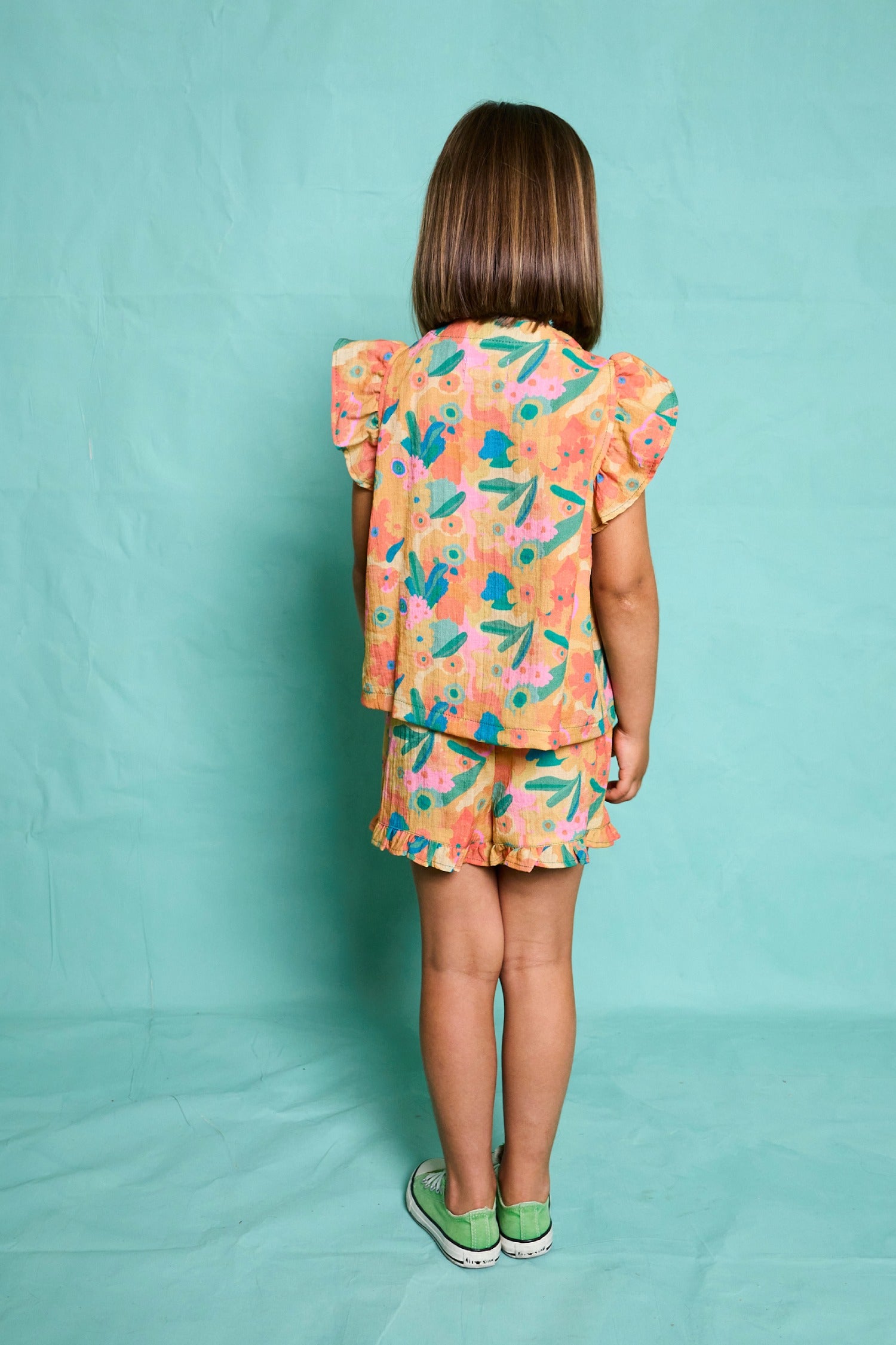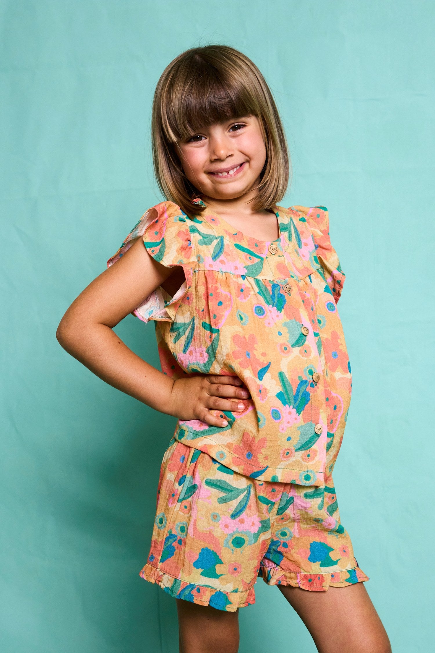 These playful ruffle-hem shorts are made for sunny days and carefree exploring. Featuring a soft elastic waistband, a flouncy hem for easy movement, and multicolour pattern with floral details, are perfect for twirling, climbing, and everything in between.