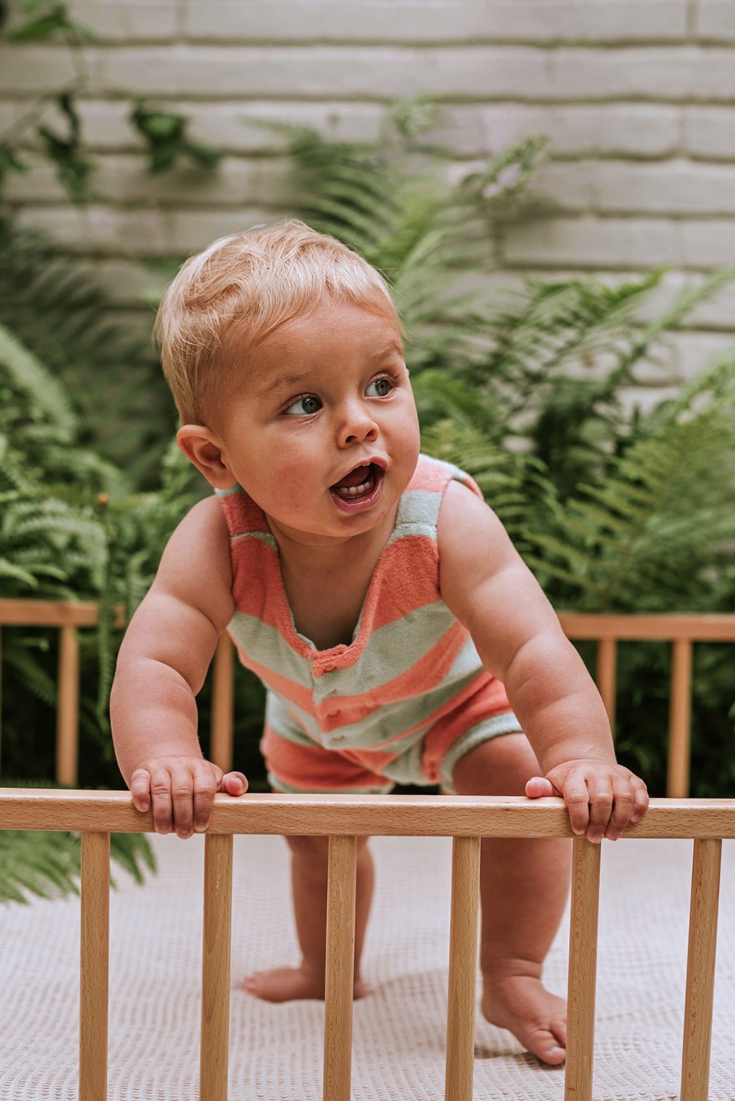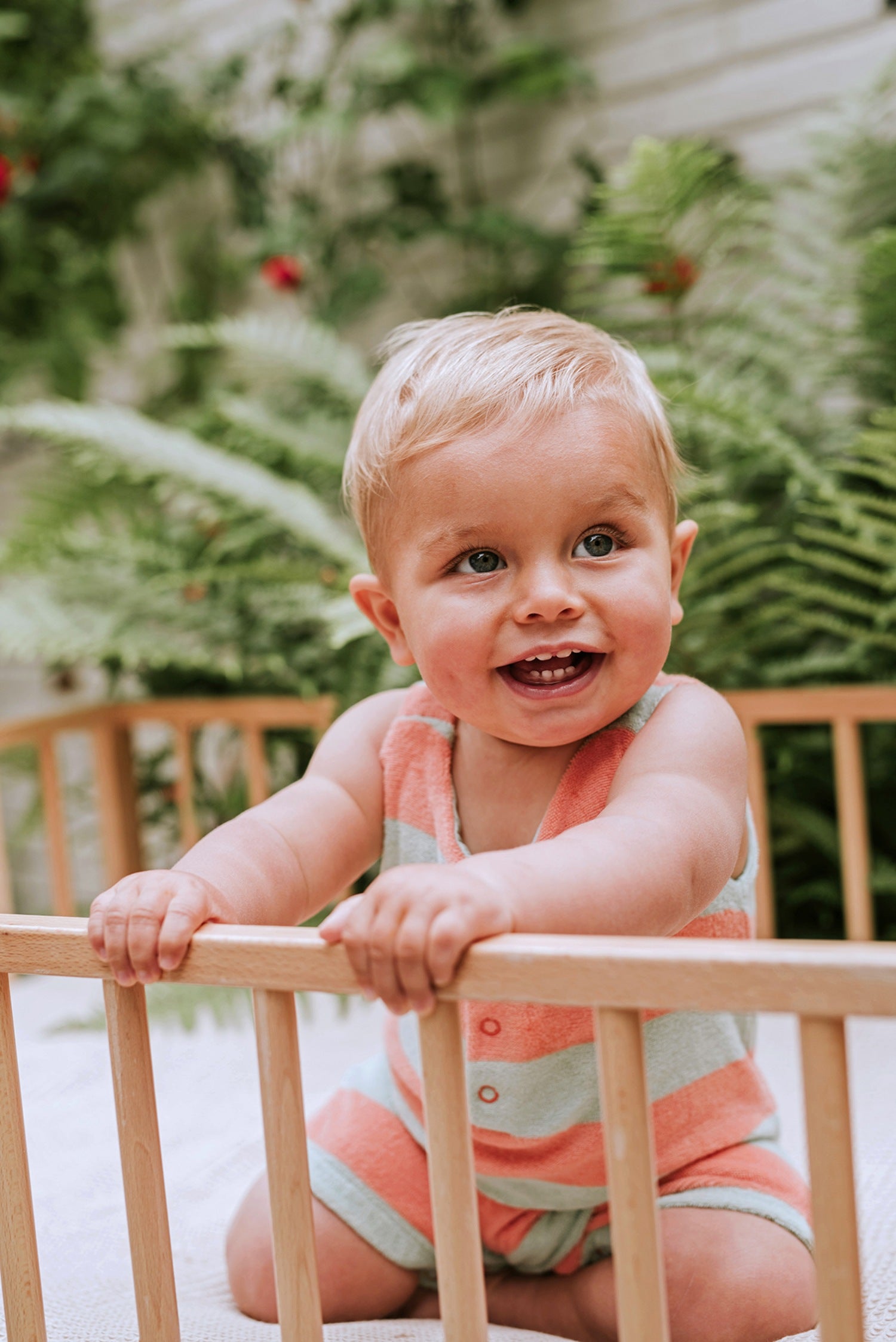 An easy, throw-on-and-go favourite for busy days. This striped terry jumpsuit is made from soft, breathable organic cotton with a relaxed fit that keeps little ones comfy from morning play to afternoon lounging. Designed for movement, mess, and memory-making — just add trainers or sandals and you’re out the door.