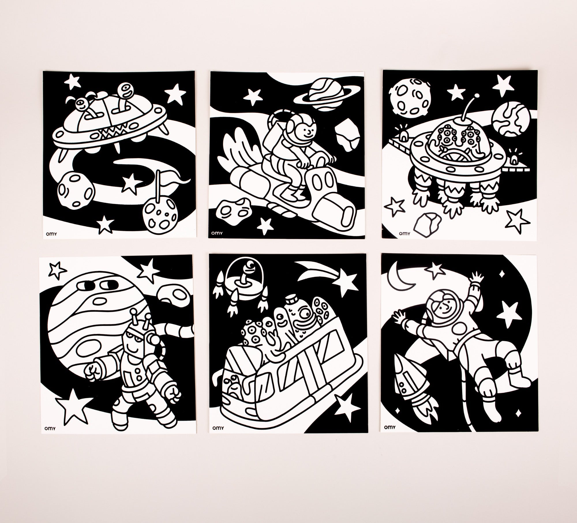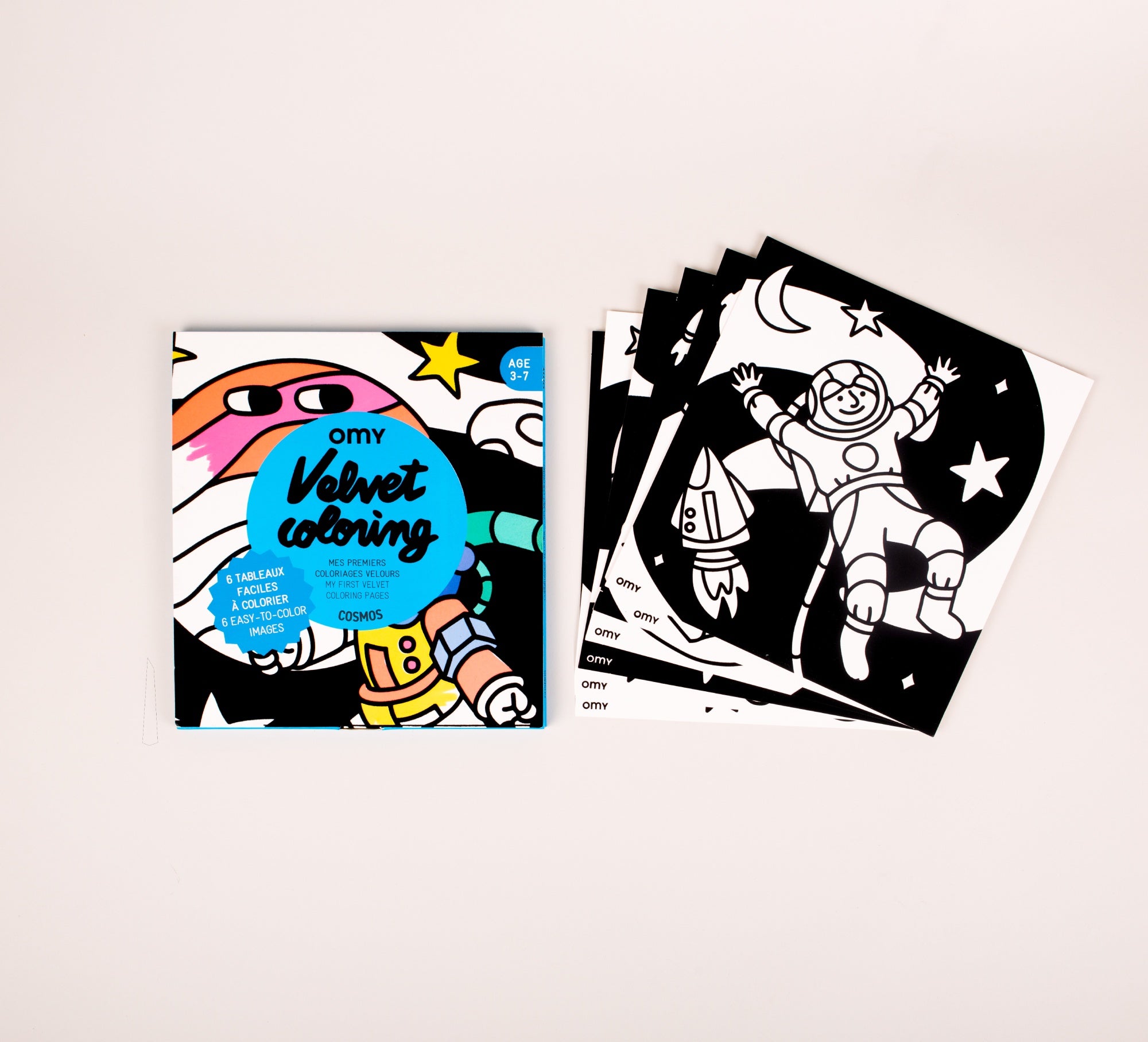 Journey through the cosmic universe with these 6 mesmerizing velvet colouring pages! The soft velvet surface keeps young explorers' colours perfectly in place, making every stroke a success. A stellar way to develop fine motor control and creativity while discovering the magic of space, one colourful masterpiece at a time.